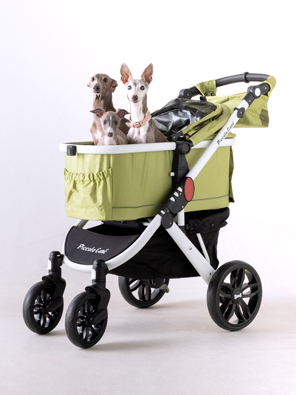 わたしたちピッコロカーネは、日本で初めてベビーカーをベースにしてペット用のカートを作った会社です。